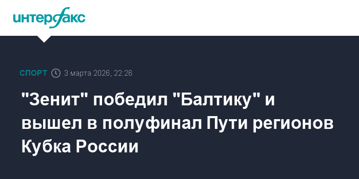 Москва. 3 марта. INTERFAX.RU - Петербургский "Зенит" со счетом 1:0 одержал выездную победу над калининградской "Балтикой" в матче второго этапа 1/4 финала Пути регионов Кубка России по футболу.