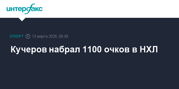 Москва. 13 марта. INTERFAX.RU - Нападающий "Тампа-Бэй" россиянин Никита Кучеров достиг отметки в 1100 очков в регулярных чемпионатах Национальной хоккейной лиги.