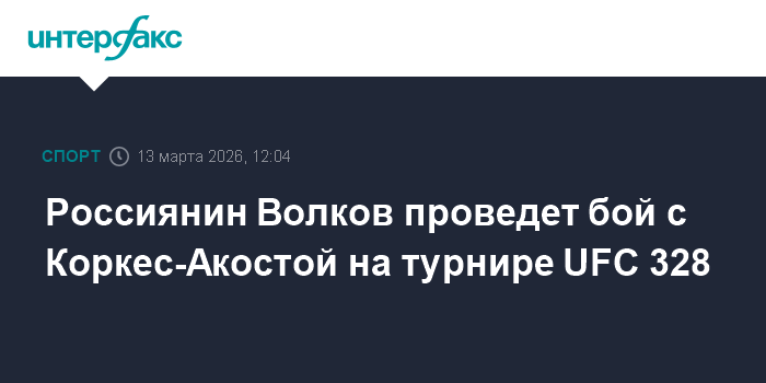Москва. 13 марта. INTERFAX.RU - Российский боец смешанного стиля Александр Волков проведет поединок с представителем Доминиканской Республики Валдо Кортес-Акостой на турнире UFC 328. Об этом сообщает пресс-служба Абсолютного бойцовского чемпионата.