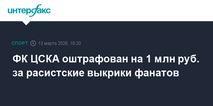 ФК ЦСКА оштрафован на 1 млн руб. за расистские выкрики фанатов