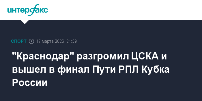 "Краснодар" разгромил ЦСКА и вышел в финал Пути РПЛ Кубка России