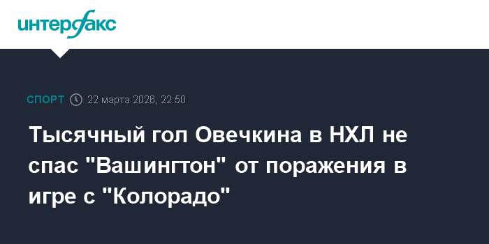 Тысячный гол Овечкина в НХЛ не спас "Вашингтон" от поражения в игре с "Колорадо"