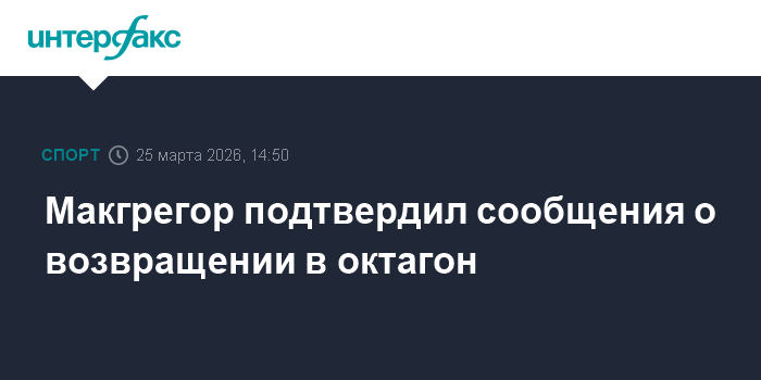 Москва. 25 марта. INTERFAX.RU - Бывший чемпион Абсолютного бойцовского чемпионата (UFC) в полулегкой и легкой весовых категориях ирландский боец смешанного стиля Конор Макгрегор подтвердил информацию о своем возвращении в октагон.