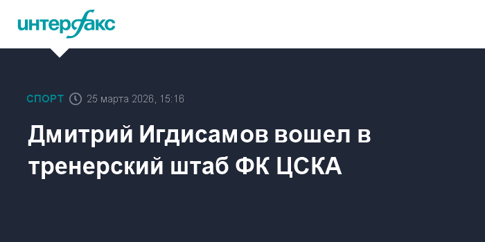 Москва. 25 марта. INTERFAX.RU - Дмитрий Игдисамов пополнил тренерский штаб ЦСКА, сообщает пресс-служба московского футбольного клуба.