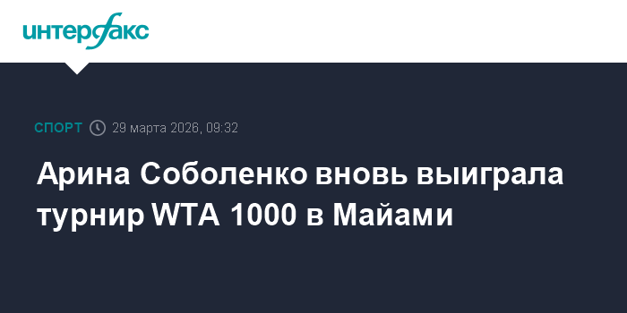 Москва. 29 марта. INTERFAX.RU - Белорусская теннисистка Арина Соболенко победила Кори Гауфф в финале турнира в Майами.