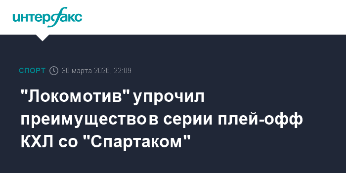 Москва. 30 марта. INTERFAX.RU - Ярославский "Локомотив" со счетом 2:0 обыграл московский "Спартак" в четвертом матче стартового раунда серии плей-офф Континентальной хоккейной лиги.