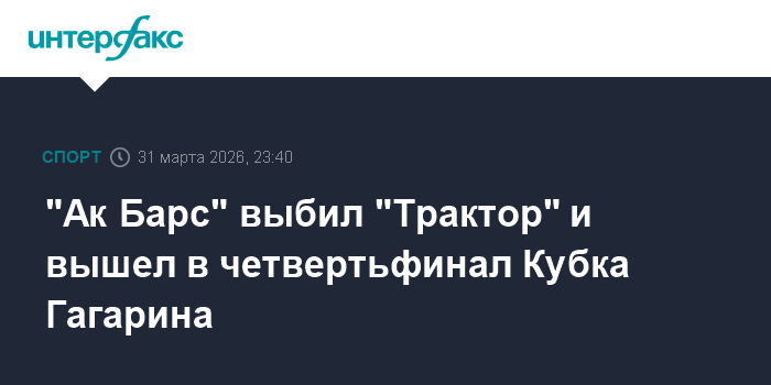 Москва. 31 марта. INTERFAX.RU - Хоккеисты казанского "Ак Барса" со счетом 2:1 победили челябинский "Трактор" в пятом матче стартового раунда плей-офф КХЛ.