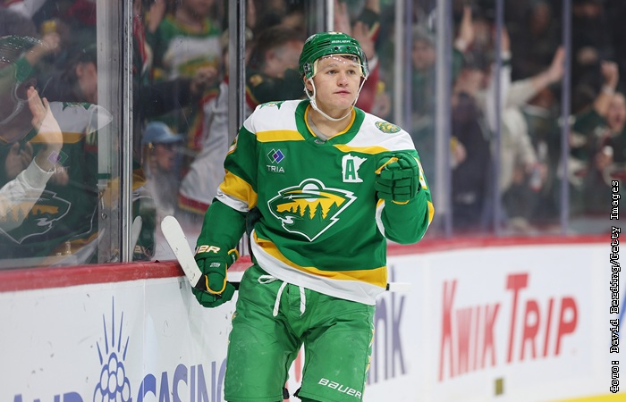 Российский нападающий "Миннесоты" Кирилл Капризов оформил хет-трик, забросив шайбы на 22-й, 33-й и 59-й минутах.