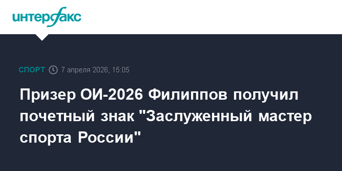 Призер ОИ-2026 Филиппов получил почетный знак "Заслуженный мастер спорта России"