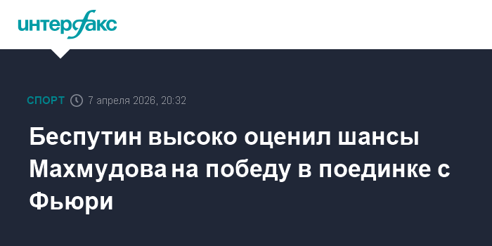 Москва. 7 апреля. INTERFAX.RU - Генеральный секретарь Федерации бокса России Александр Беспутин пожелал удачи соотечественнику Арсланбеку Махмудову в поединке с экс-чемпионом WBC, WBO, WBA, IBF в тяжелом весе британцем Тайсоном Фьюри