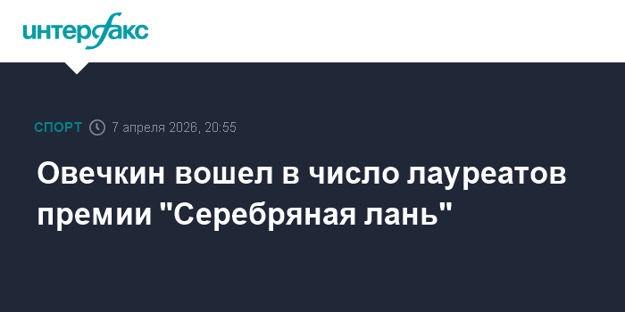 Москва. 7 апреля. INTERFAX.RU - Хоккеист Александр Овечкин вошел число лучших российских спортсменов по итогам 2025 года, сообщает пресс-служба премии "Серебряная лань".