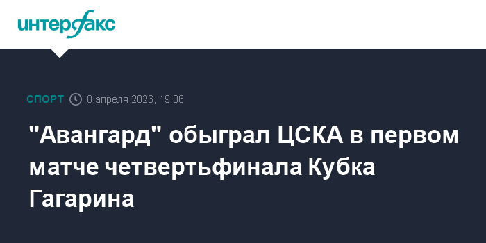 Москва. 8 апреля. INTERFAX.RU - Хоккеисты омского "Авангарда" со счетом 3:0 победили московский матч в первой встрече в рамках четвертьфинальной серии розыгрыша Кубка Гагарина КХЛ.