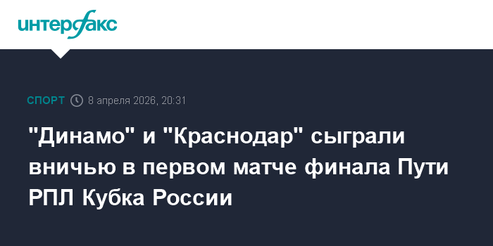 Москва. 8 апреля. INTERFAX.RU - Футболисты московского "Динамо" и "Краснодара" со счетом 0:0 завершили первый финальный матч Пути РПЛ Кубка России.