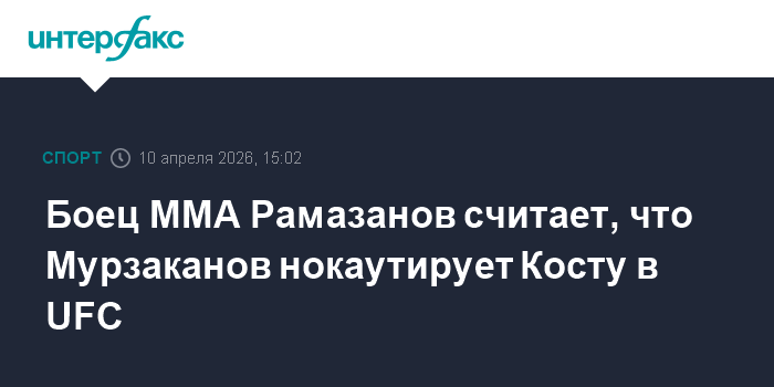 Москва. 10 апреля. INTERFAX.RU - Российский боец ММА Шамиль Рамазанов считает, что соотечественник Азамат Мурзаканов досрочно победит бразильца Пауло Косту на предстоящем в США турнире UFC 327.