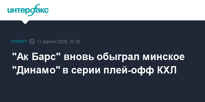 Счет в серии до четырех побед стал 2-0 в пользу "Ак Барса". Следующие два матча серии пройдут 13 и 15 апреля в Казани.