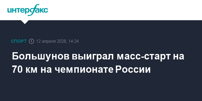Москва. 12 апреля. INTERFAX.RU - Трехкратный олимпийский чемпион Александр Большунов стал победителем марафона на 70 км классическим стилем на чемпионате России по лыжным гонкам в Мончегорске (Мурманская область).