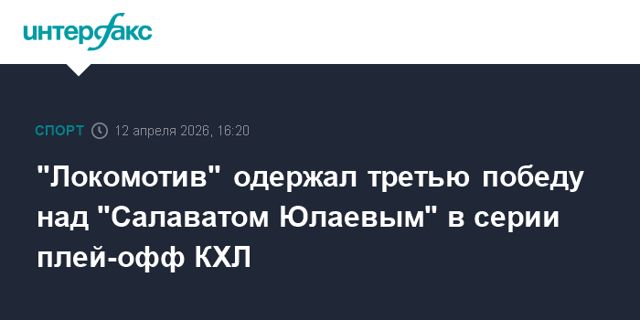 Москва. 12 апреля. INTERFAX.RU - Хоккеисты ярославского "Локомотива" со счетом 3:2 победили уфимский "Салават Юлаев" в третьем матче четвертьфинальной серии плей-офф.