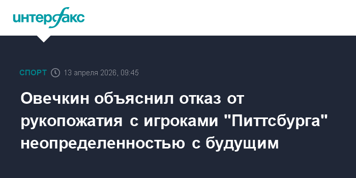 Москва. 13 апреля. INTERFAX.RU - Нападающий "Вашингтона" Александр Овечкин заявил, что отказался от рукопожатия с хоккеистами "Питтсбурга" после матча НХЛ, поскольку не определился с дальнейшей карьерой.