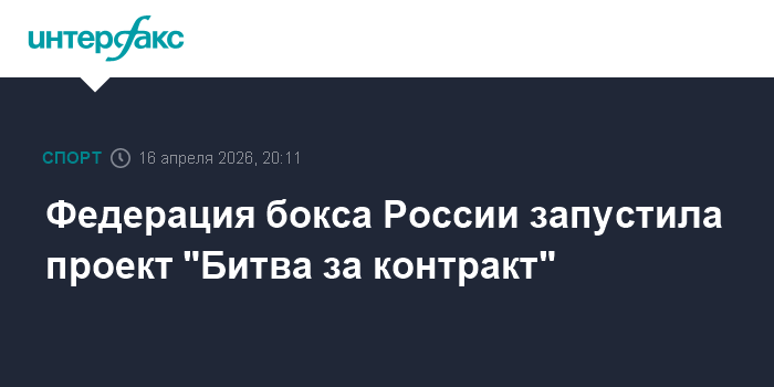 Москва. 16 апреля. INTERFAX.RU - Федерация бокса России объявила о запуске проекта "Битва за контракт". Как сообщили в федерации, в рамках проекта молодые боксёры получат возможность громко заявить о себе и подписать профессиональные контракты с ведущими промоутерскими компаниями страны.