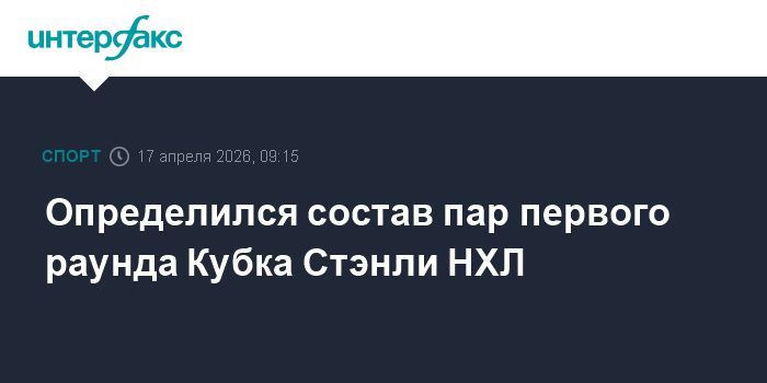Москва. 17 апреля. INTERFAX.RU - В Национальной хоккейной лиге сформировался состав пар первого раунда плей-офф, розыгрыша Кубка Стэнли Национальной хоккейной лиги.