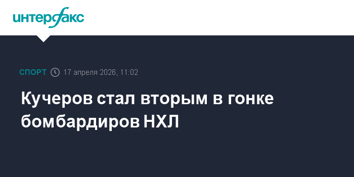 Москва. 17 апреля. INTERFAX.RU - Российский нападающий "Тампа-Бэй" Никита Кучеров занял второе место в гонке бомбардиров по итогам регулярного чемпионата НХЛ сезона-2025/26.