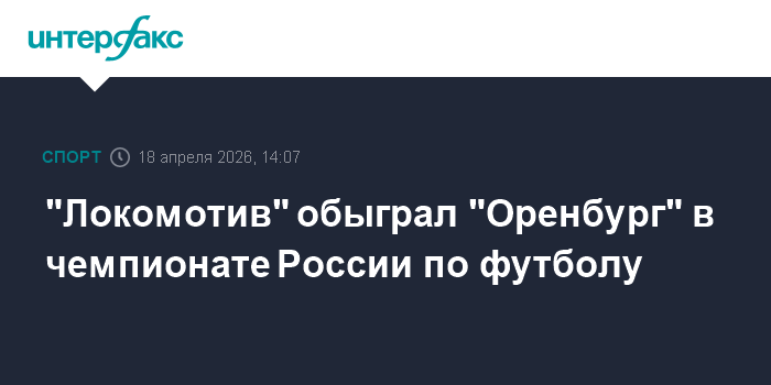 Москва. 18 апреля. INTERFAX.RU - Футболисты московского "Локомотива" со счетом 1:0 взял верх над "Оренбургом" в гостевом матче 25-го тура чемпионата России.