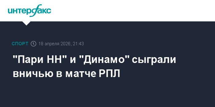 В следующем туре 22 апреля "Пари НН" на выезде сыграет с "Оренбургом", "Динамо" в этот же день дома встретится с казанским "Рубином".