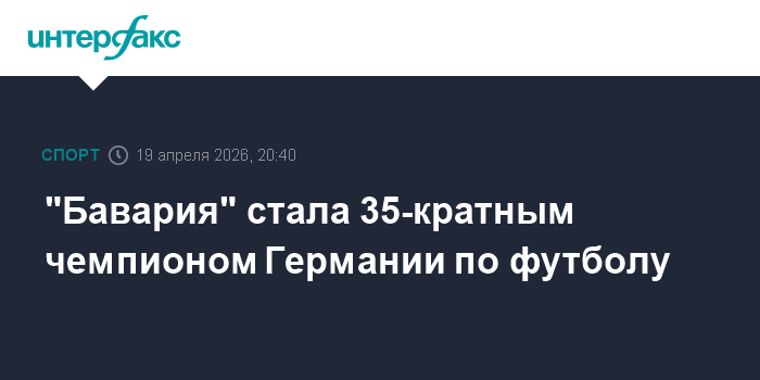 Москва. 19 апреля. INTERFAX.RU - "Бавария" досрочно завоевала звание чемпиона Германии по футболу в сезоне-2025/26.