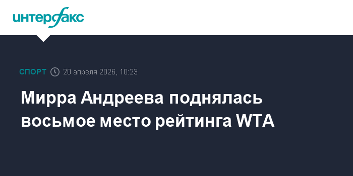 Москва. 20 апреля. INTERFAX.RU - Россиянка Мирра Андреева улучшила свои позиции в рейтинге Женской теннисной ассоциации, обновленная версия которого опубликована в понедельник на сайте организации.