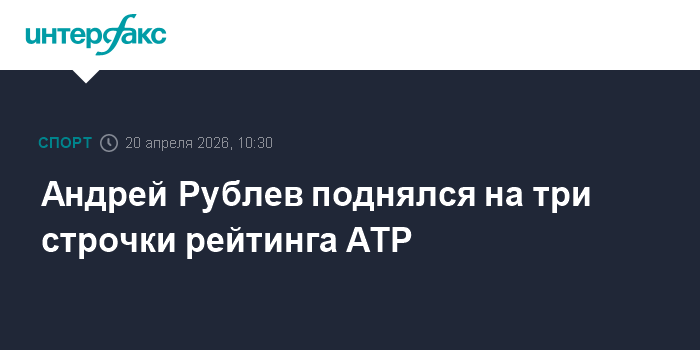 Москва. 20 апреля. INTERFAX.RU - Россиянин Андрей Рублев поднялся на 12-е место в рейтинге Ассоциации теннисистов-профессионалов (ATP), обновленная версия которого опубликована на сайте ATP.