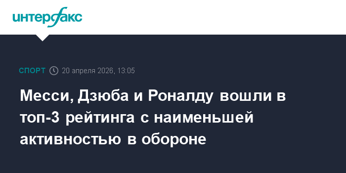 Москва. 20 апреля. INTERFAX.RU - Футболист "Акрoна" Артем Дзюба разделил второе место с португальцем Криштиану Роналду из саудовского "Аль-Насра" в рейтинге игроков с наименьшей активностью в обороне. Рейтинг составил Международный центр спортивных исследований (CIES).