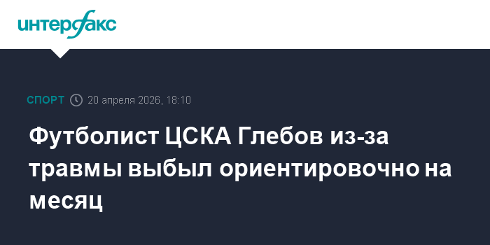 Москва. 20 апреля. INTERFAX.RU - У полузащитника ЦСКА Кирилла Глебова по результатам МРТ диагностировано повреждение двуглавой мышцы бедра, сообщает пресс-служба московского футбольного клуба.