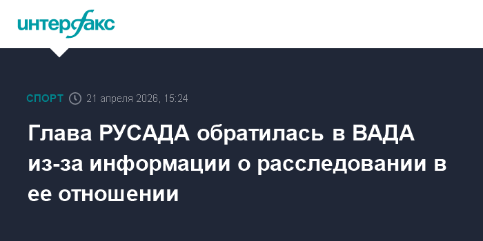 Москва. 21 апреля. INTERFAX.RU - Глава РУСАДА Вероника Логинова сообщила, что обратилась с запросом во Всемирное антидопинговое агентство (ВАДА) в связи с сообщениями о том, что в отношении нее этой организацией проводится расследование, но ответа пока не получила.