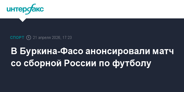 Москва. 21 апреля. INTERFAX.RU - Сборная России по футболу сыграет в товарищеском матче с Буркина-Фасо. О соответствующих договоренностях с РФС сообщил генеральный секретарь Федерации футбола Буркина-Фасо Балима Бурейма.
