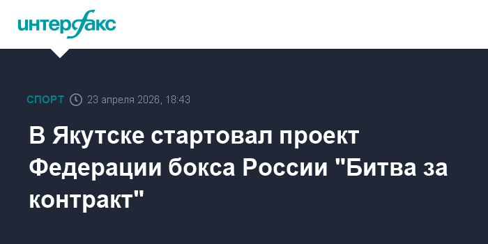 Москва. 23 апреля. INTERFAX.RU - В Якутске дан старт проекту Федерации бокса России "Битва за контракт", реализуемому при поддержке Международной ассоциации бокса (IBA).