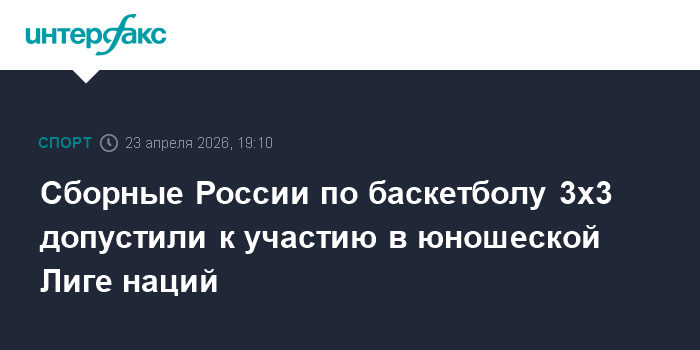 Москва. 23 апреля. INTERFAX.RU - Международная федерация баскетбола (FIBA) допустила сборные России и Белоруссии к участию в турнирах юношеской Лиги наций в формате 3×3. Об этом сообщает "Матч ТВ".