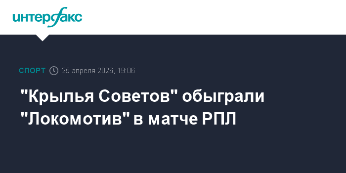 Москва. 25 апреля. INTERFAX.RU - Футболисты самарских "Крыльев Советов" со счетом 2:0 победили московский "Локомотив" в матче 27-го тура чемпионата России.