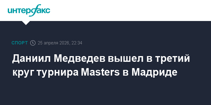 Москва. 25 апреля. INTERFAX.RU - Россиянин Даниил Медведев победил венгра Фабиана Марожана в матче второго круга теннисного турнира категории Mastersв Мадриде.