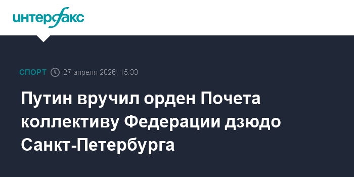 Путин вручил орден Почета коллективу Федерации дзюдо Санкт-Петербурга