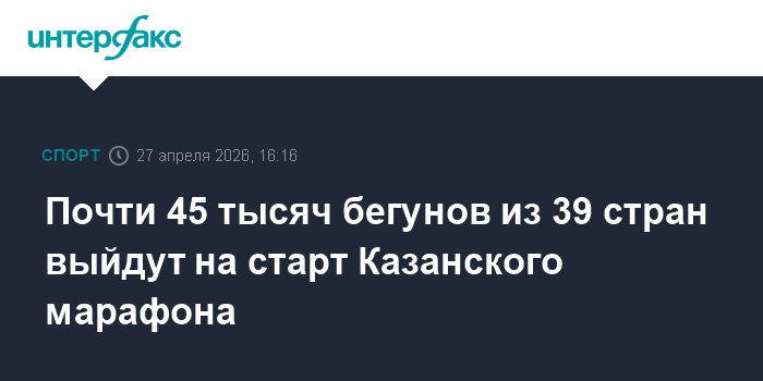 Москва. 27 апреля. INTERFAX.RU - Рекордное число участников – почти 45 тысяч бегунов - зарегистрировались на участие в Казанском марафоне-2026, сообщили организаторы.