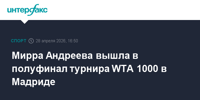 Москва. 28 апреля. INTERFAX.RU - Первая ракетка России Мирра Андреева победила представительницу Канады Лейлу Фернандес в четвертьфинале теннисного турнира категории WTA 1000 в Мадриде.