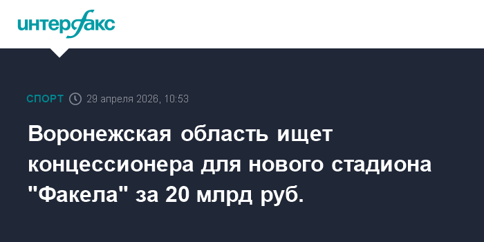 Воронежская область ищет концессионера для нового стадиона "Факела" за 20 млрд руб.