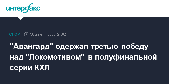 Москва. 30 апреля. INTERFAX.RU - Омский "Авангард" со счетом 2:0 взял верх над ярославским "Локомотивом" в четвертом матче серии 1/2 финала розыгрыша Кубка Гагарина Континентальной хоккейной лиги.