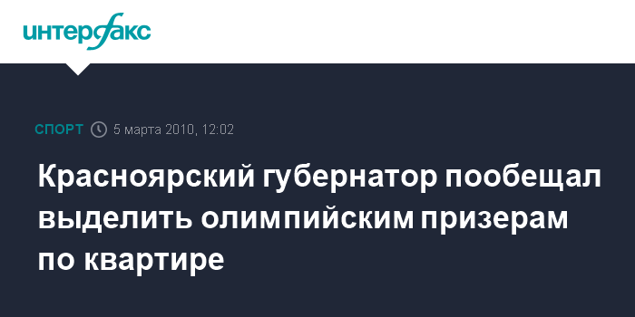 Красноярский губернатор пообещал выделить олимпийским призерам по квартире