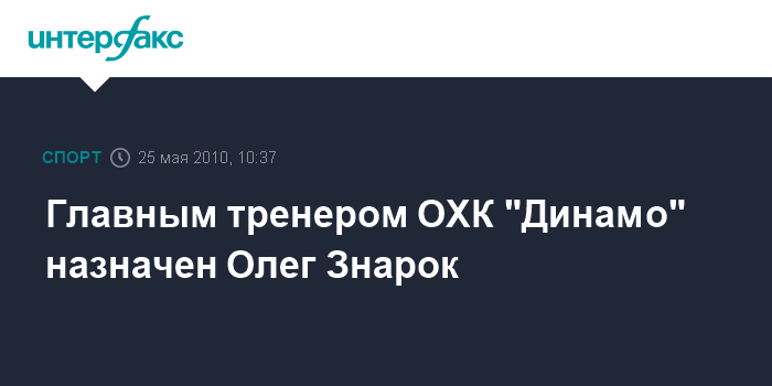 Москва. 25 мая. INTERFAX.RU – Главным тренером Объединенного хоккейного клуба "Динамо" назначен наставник сборной Латвии Олег Знарок, сообщает пресс-служба ОХК "Динамо".