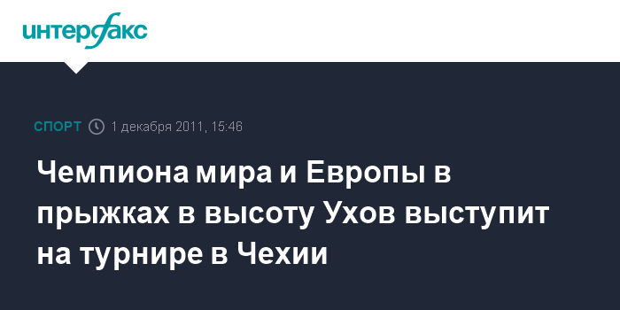 Москва. 1 декабря. INTERFAX.RU – Чемпиона мира и Европы в помещение в прыжках в высоту россиянин Иван Ухов примет участие в турнире в Чехии - Moravia High Jump Tour Series, который пройдет в городах Густопече и Тршинеце, сообщает сайт Федерации легкой атлетики России.