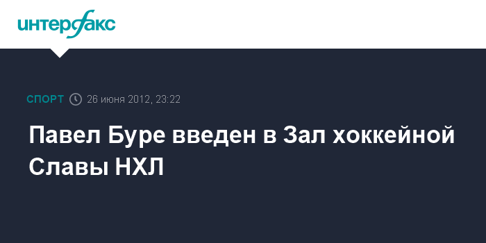 Москва. 26 июня. INTERFAX.RU - В Зал хоккейной Славы Национальной хоккейной лиги (НХЛ) во вторник были введены четверо новых членов, среди которых - прославленный российский нападающий Павел Буре. Помимо него, в Зал хоккейной Славы НХЛ были включены форварды Джо Сакик, Адам Оутс и Матс Сундин, сообщает "Спорт-Экспресс".