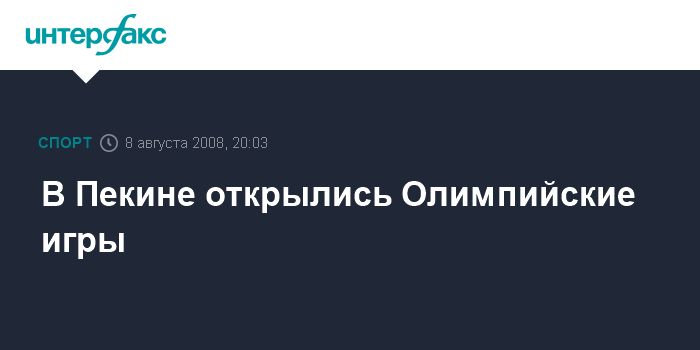 Москва. 8 августа. INTERFAX.RU - На пекинском стадионе "Птичье гнездо" в пятницу состоялась церемония открытия XXIX летних Олимпийских игр. Председатель КНР Ху Цзиньтао объявил Олимпийские игры открытыми.