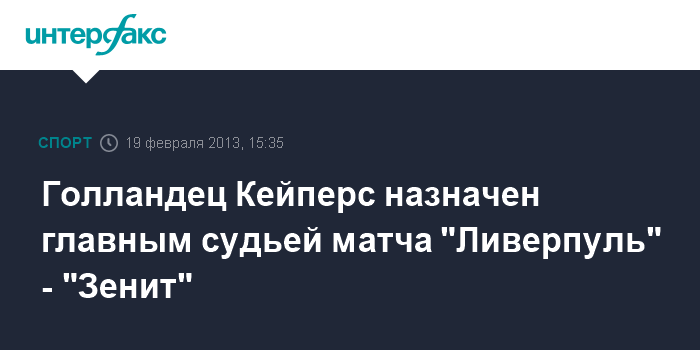 Москва. 19 февраля. INTERFAX.RU - Ответную встречу 1/16 финала Лиги Европы УЕФА между английским "Ливерпулем" и петербургским "Зенитом" обслужит голландская бригада арбитров во главе с Бьорном Кейперсом.