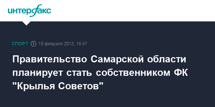 Правительство Самарской области планирует стать собственником ФК "Крылья Советов"